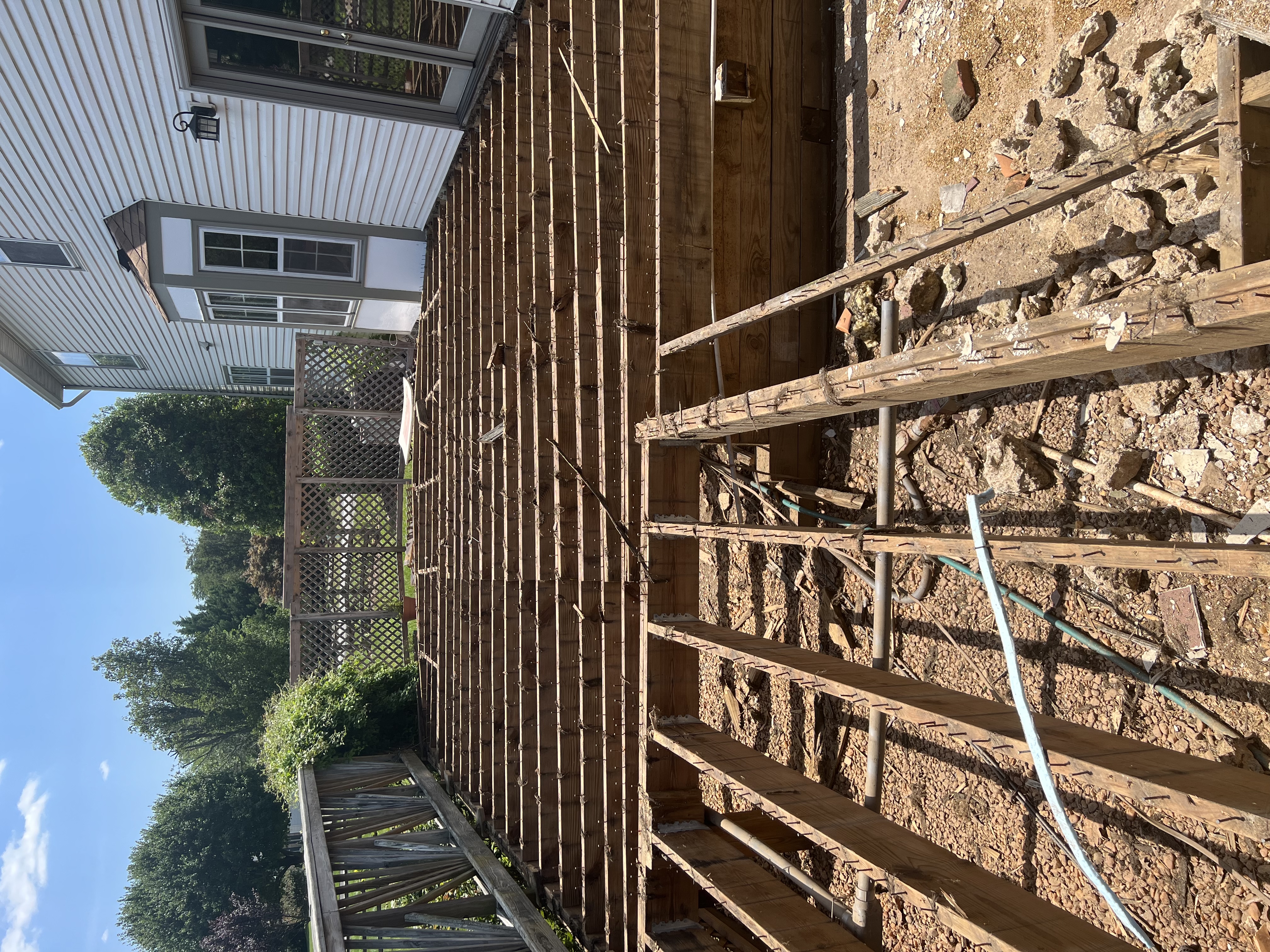 Ground Level Deck – Ground Level Decks are typically less than twelve inches above the ground. A small frame will be built to allow for insulation and to prevent rotting in the wood from moisture. Ground Level Decks usually start from the back door and stretch out to desired length!